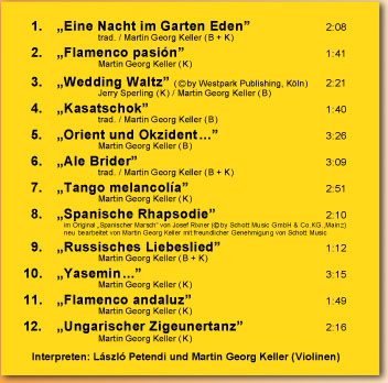 | 3. | "Wedding Waltz" (ein leidenschaftlicher Klezmer-Walzer mit faszinierender Klangfülle im Duo) |