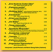 | 4. | "Flamenco pasión" (rassiges spanisches Kolorit, rhythmische Finessen, Lebensfreude pur) |